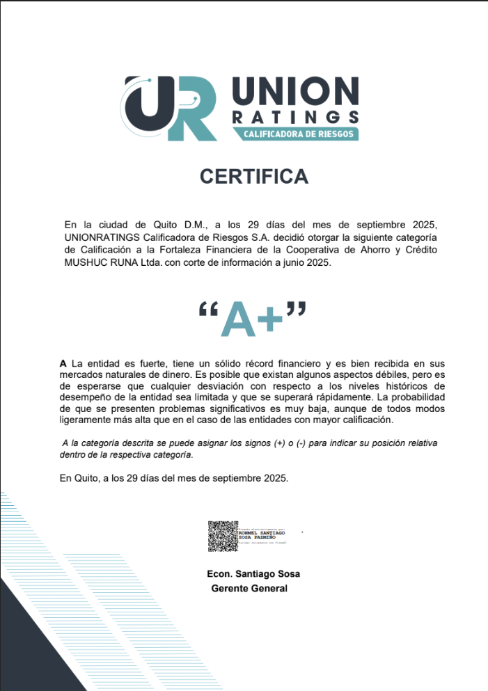 Brindar en forma integral productos y servicios financieros de calidad, con personal comprometido, bajo principios de prudencia financiera y de riesgos, manteniendo la identidad y los valores culturales, promoviendo el sumak kawsay de nuestros socios y clientes, protegiendo la pacha mama.
